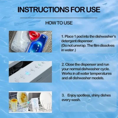 No measuring, no mess — simply place one pod into the detergent dispenser and let your dishwasher do the rest. Our formula contains no added dyes or colorants, and is gentle on dishware while providing the cleaning performance your kitchen needs every day.