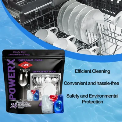 Upgrade your dishwashing experience with JWB Dishwasher Pods, specially designed for automatic dishwashers. Each pod delivers a fast-dissolving, powerful clean that helps remove tough food residues while leaving dishes, glasses, and cutlery shiny and spot-free.